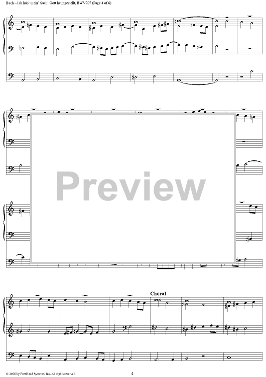 Digital Sheet Music for Ich hab mein Sach Gott heimgestellt, from "Kirnberger's Collection", BWV707 by Johann Sebastian Bach scored for Organ Solo; id:319051