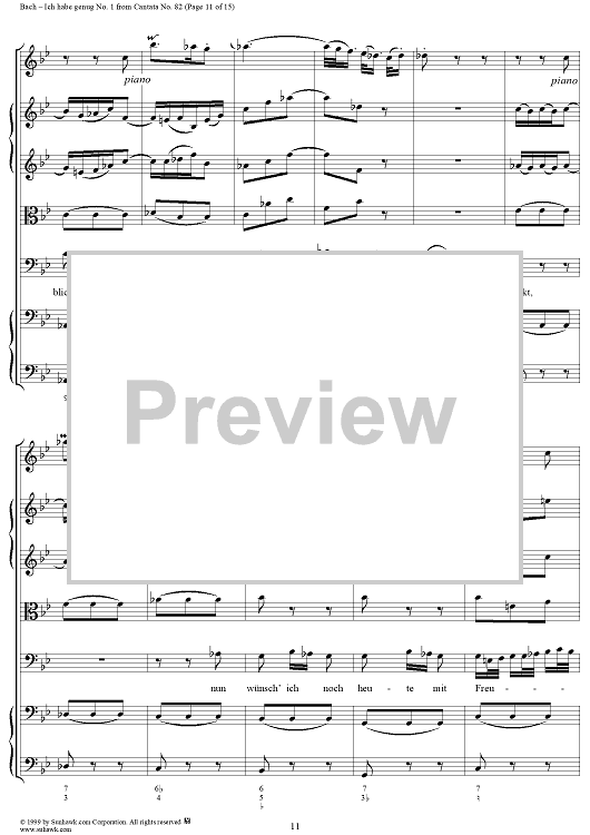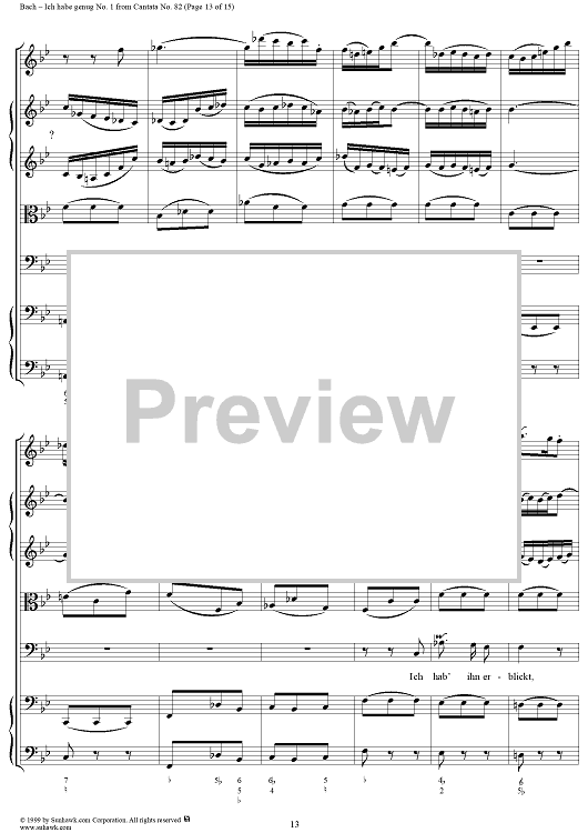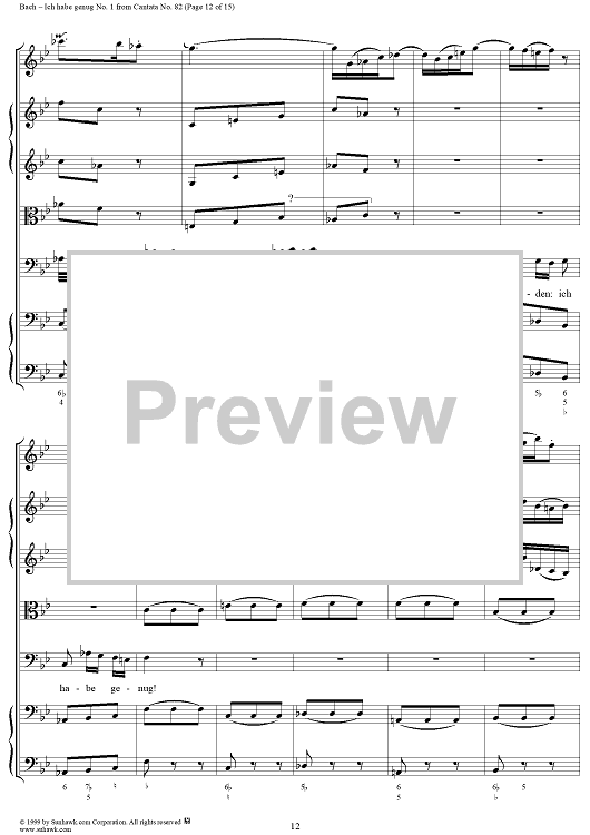 Digital Sheet Music for Ich habe genug - No. 1 from Cantata no. 82, BWV82 by Johann Sebastian Bach scored for Full Score; id:260017