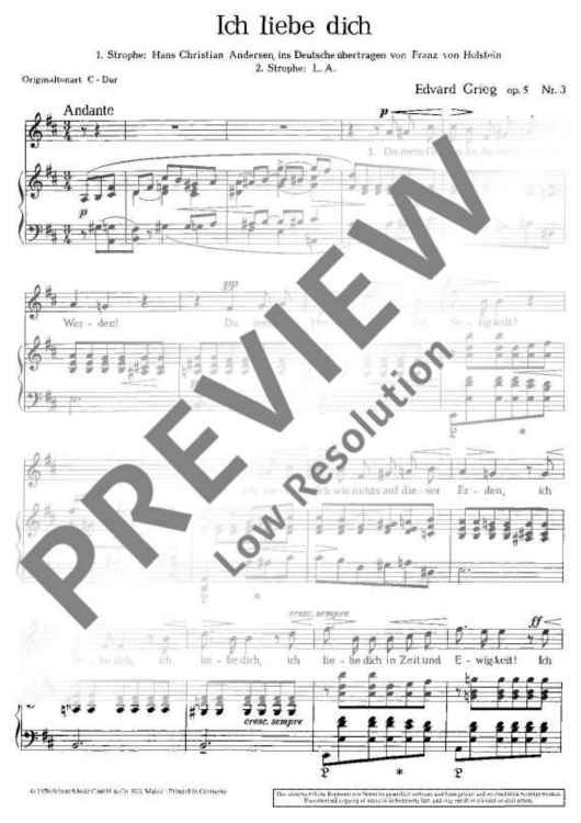 Digital Sheet Music for Ich Liebe Dich by Edvard Grieg scored for High Voice Part And Piano; id:475002