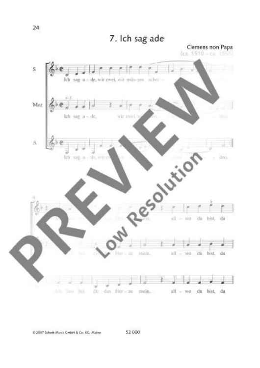 "Ich sag ade" Sheet Music by Jacobus Clemens non Papa