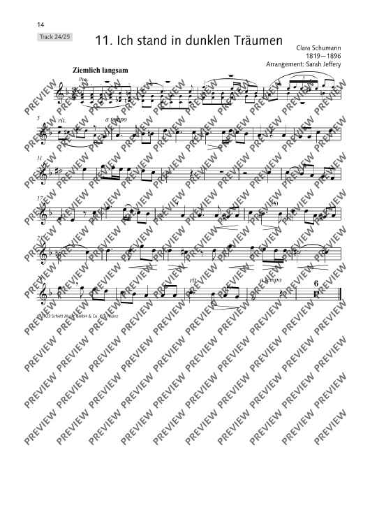 Digital Sheet Music for Ich stand in dunklen Träumen by Clara Schumann, Sarah Jeffery scored for Sopranorecorder (tenorrecorder) And Piano; id:500199