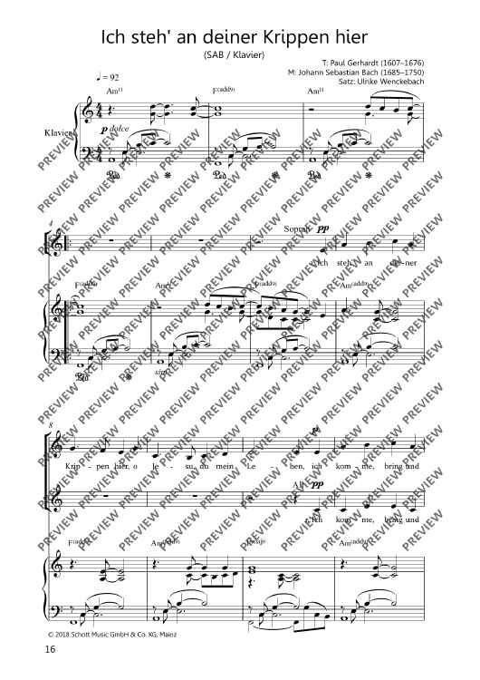 Digital Sheet Music for Ich steh’ an deiner Krippen hier by Johann Sebastian Bach, Ulrike Wenckebach scored for Mixed Choir (sab) And Piano; id:499140