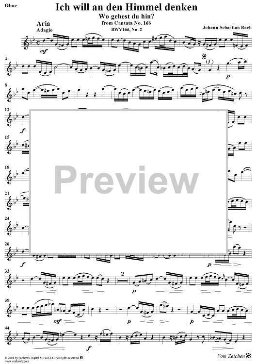 ""Ich will an den Himmel denken", Aria, No. 2 from Cantata No. 166: "Wo gehest du hin?" - Oboe" Sheet Music by Johann Sebastian Bach