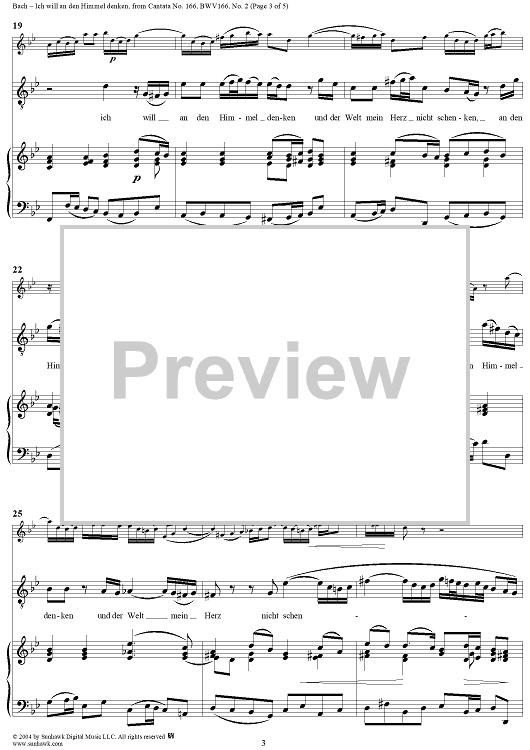 ""Ich will an den Himmel denken", Aria, No. 2 from Cantata No. 166: "Wo gehest du hin?" - Piano Score" Sheet Music by Johann Sebastian Bach