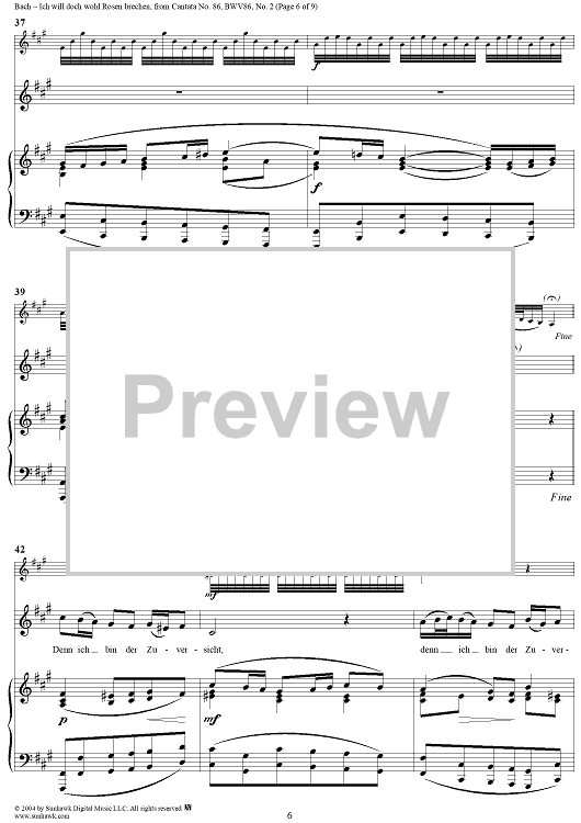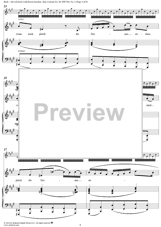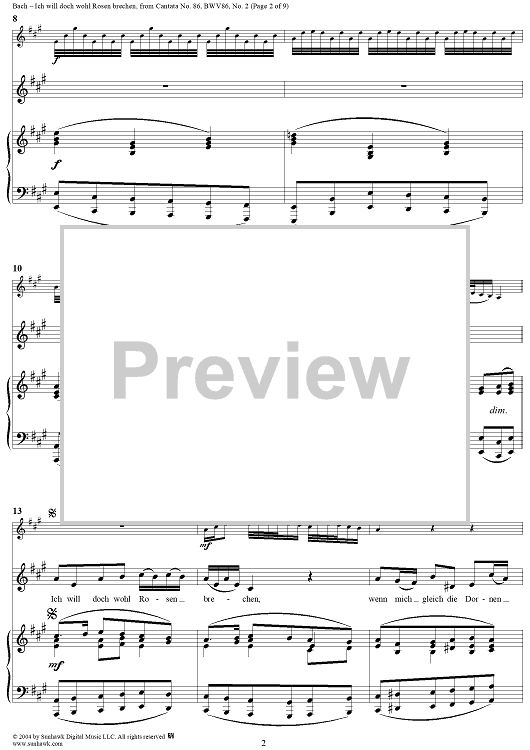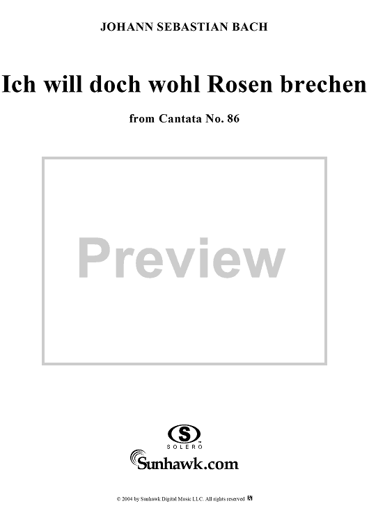 Digital Sheet Music for "Ich will doch wohl Rosen brechen", Aria, No. 2 from Cantata No. 86: "Wahrlich, wahrlich, ich sage euch" - Piano Score by Johann Sebastian Bach scored for Alto, Violin and Piano or Organ; id:303943