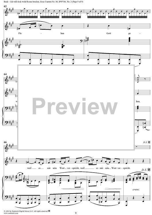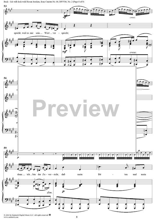 ""Ich will doch wohl Rosen brechen", Aria, No. 2 from Cantata No. 86: "Wahrlich, wahrlich, ich sage euch" - Piano Score" Sheet Music by Johann Sebastian Bach