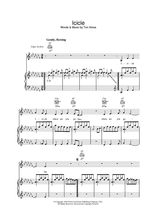 Digital Sheet Music for Icicle by Tori Amos scored for Piano/Vocal/Chords; id:392390