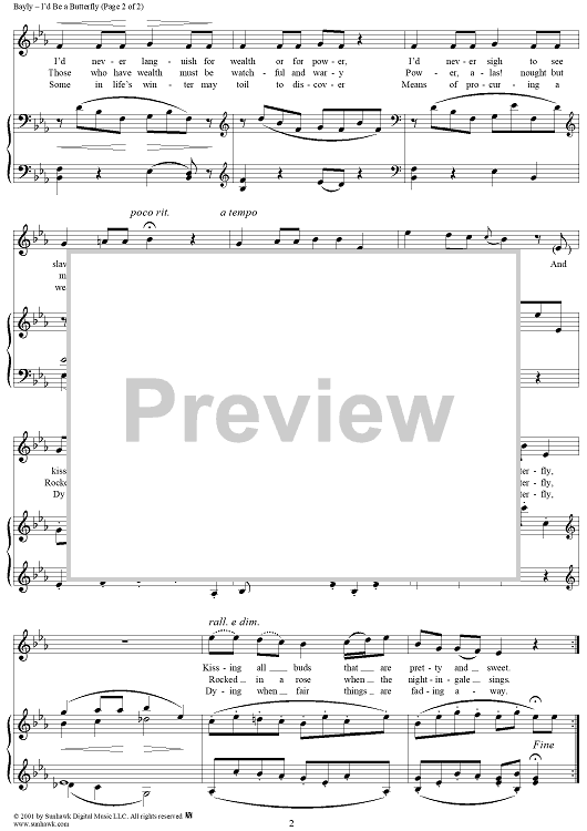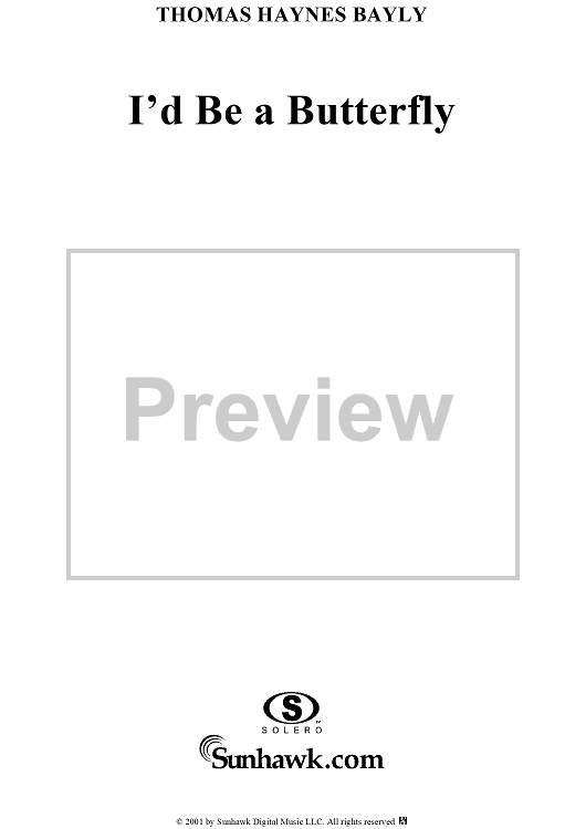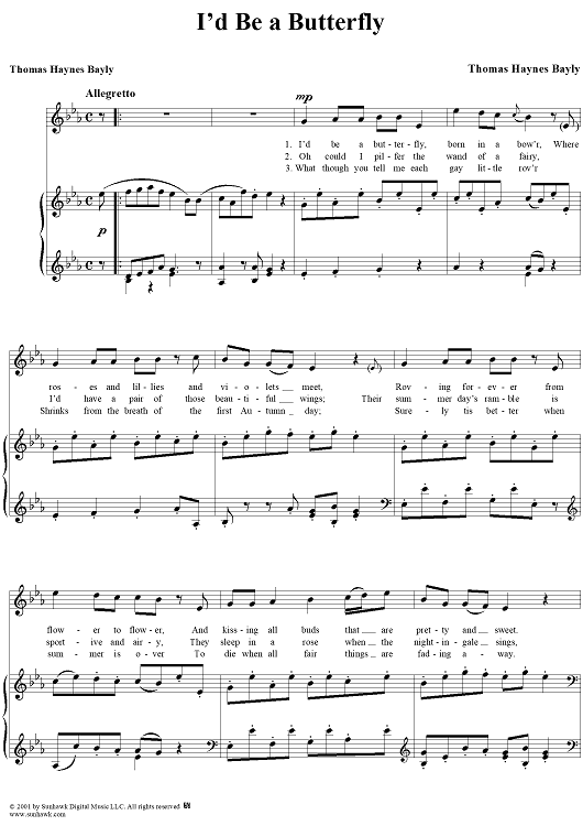 Digital Sheet Music for I'd be a butterfly by Thomas Haynes Bayly scored for Piano/Vocal; id:258927