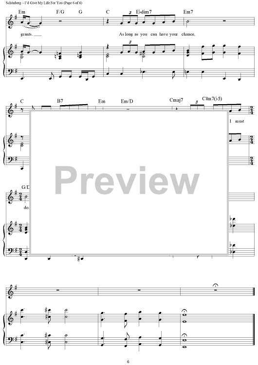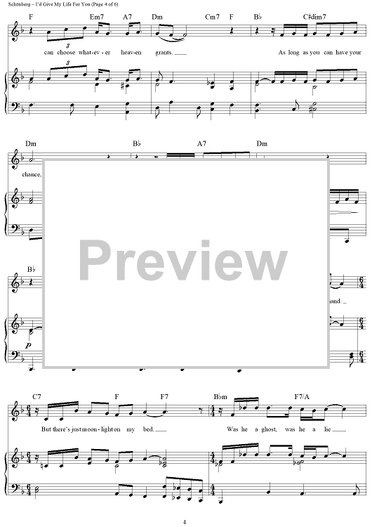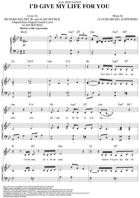 Digital Sheet Music for I'd Give My Life For You by Claude-Michel Schonberg, Alain Boublil, Richard Maltby Jr. scored for Piano/Vocal/Chords; id:384779