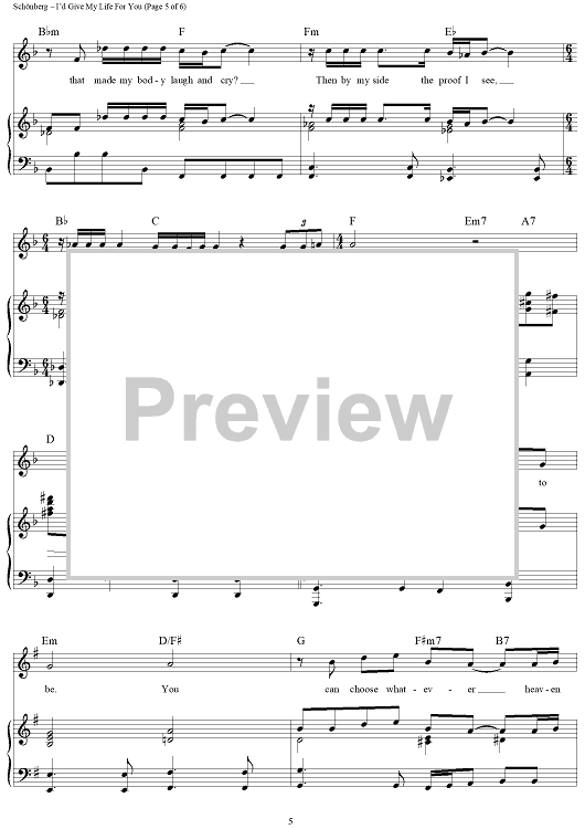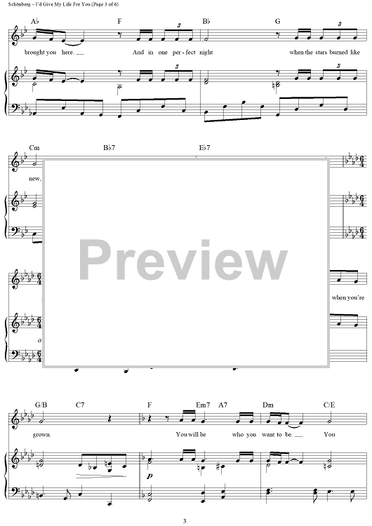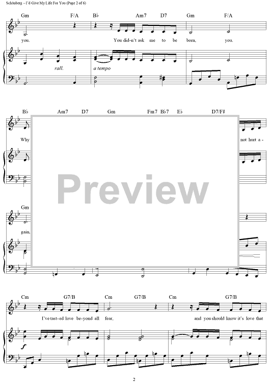 "I'd Give My Life For You" Sheet Music by Claude-Michel Schonberg
