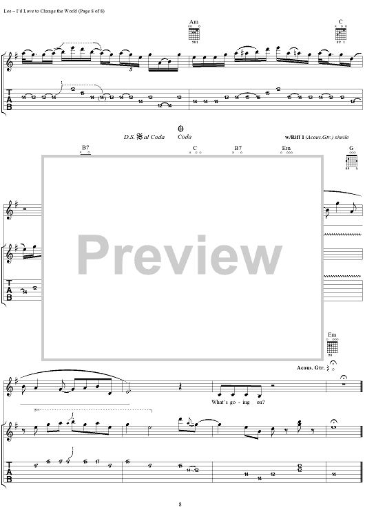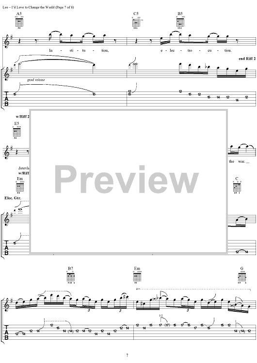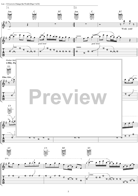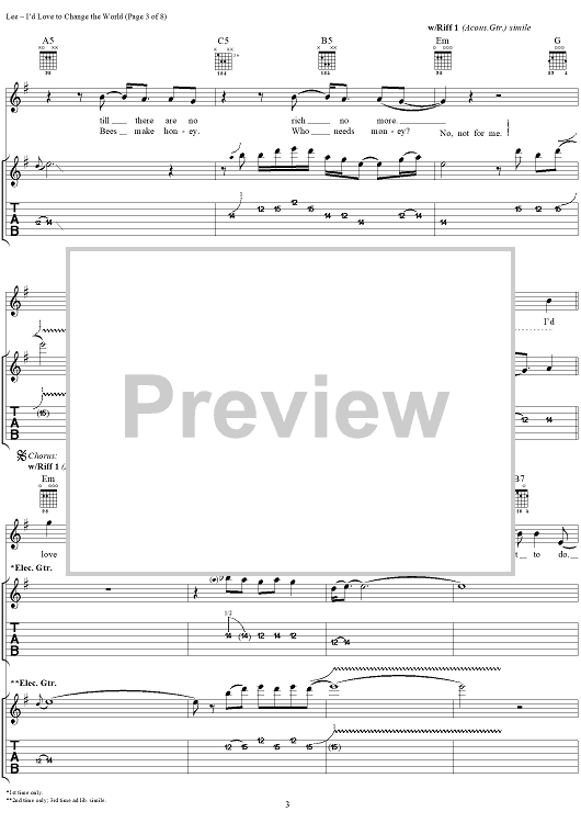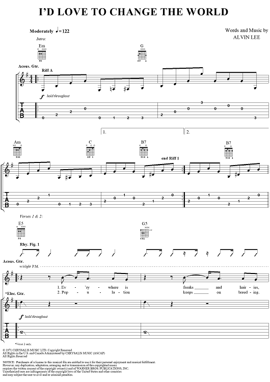 Digital Sheet Music for I'd Love to Change the World by Alvin Lee, Ten Years After scored for Guitar Tab/Vocal; id:233564