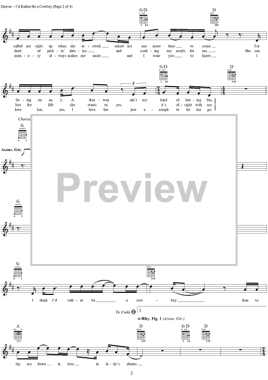 "I'd Rather Be a Cowboy" Sheet Music by John Denver