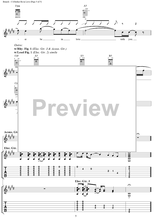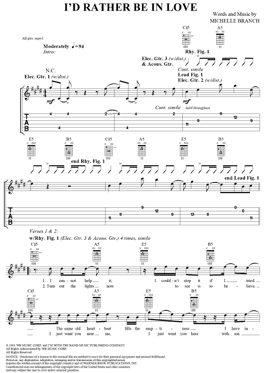 Digital Sheet Music for I'd Rather Be in Love by Michelle Branch scored for Guitar Tab/Vocal; id:293171