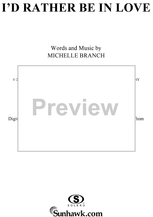 "I'd Rather Be in Love" Sheet Music by Michelle Branch