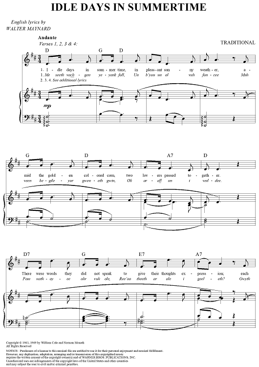 Digital Sheet Music for Idle Days in Summertime by Norman Monath, Traditional scored for Piano/Vocal/Chords; id:260765