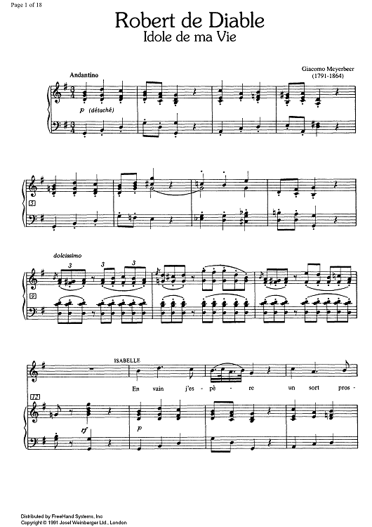 Digital Sheet Music for Idole de ma vie from Robert de Diable by Giacomo Meyerbeer scored for Soprano/Piano; id:332344