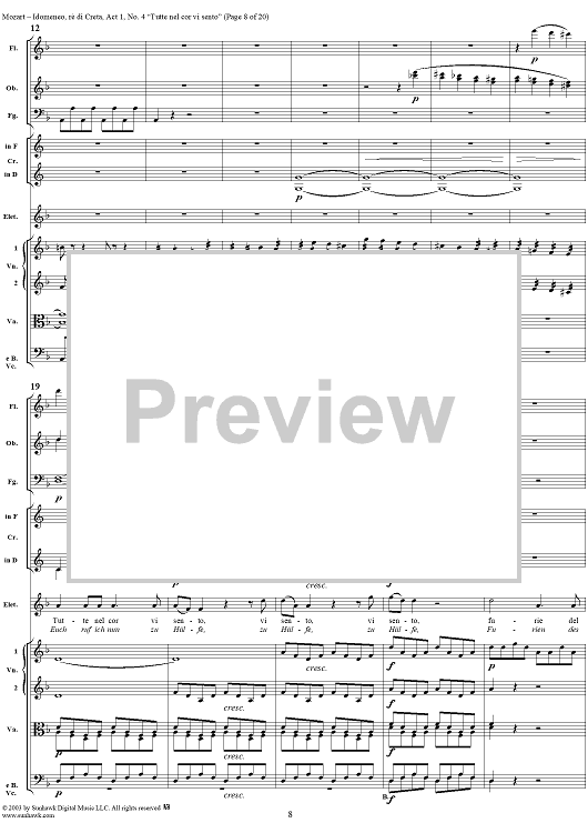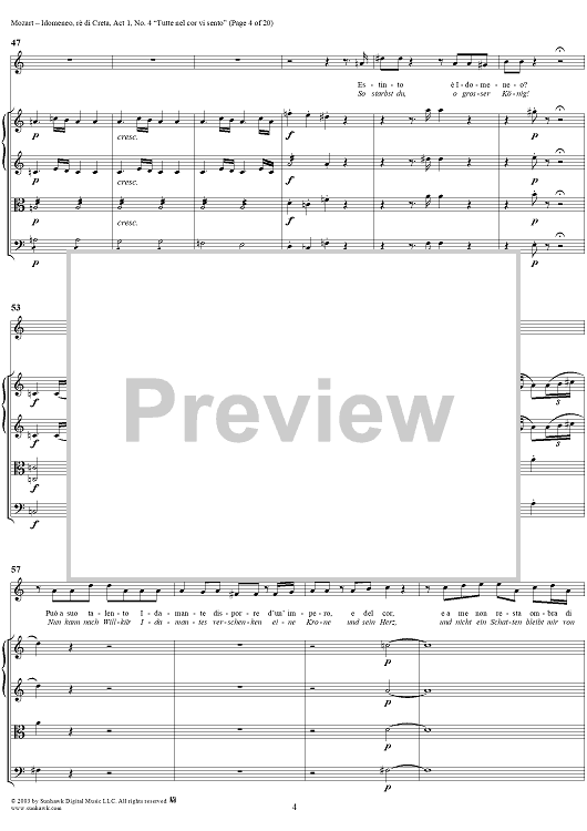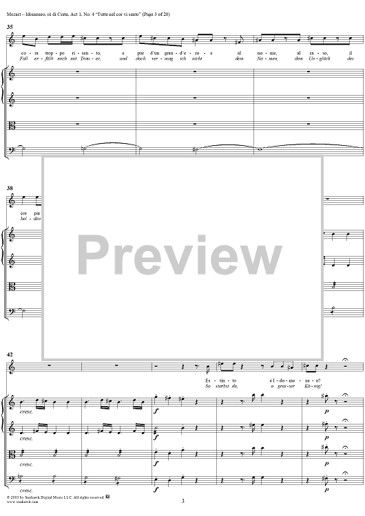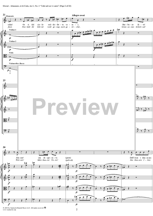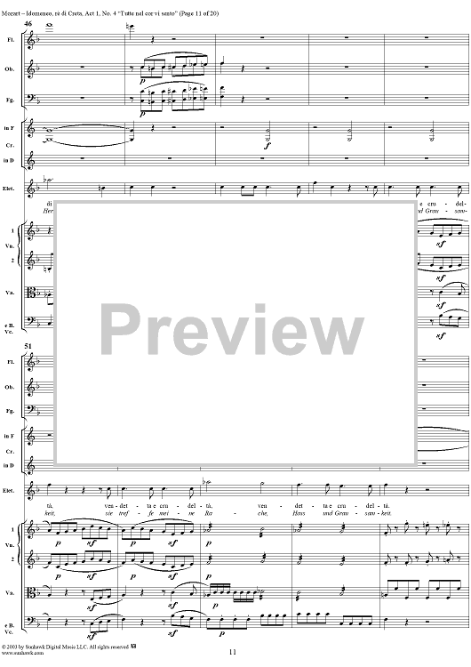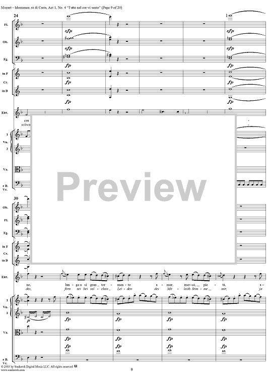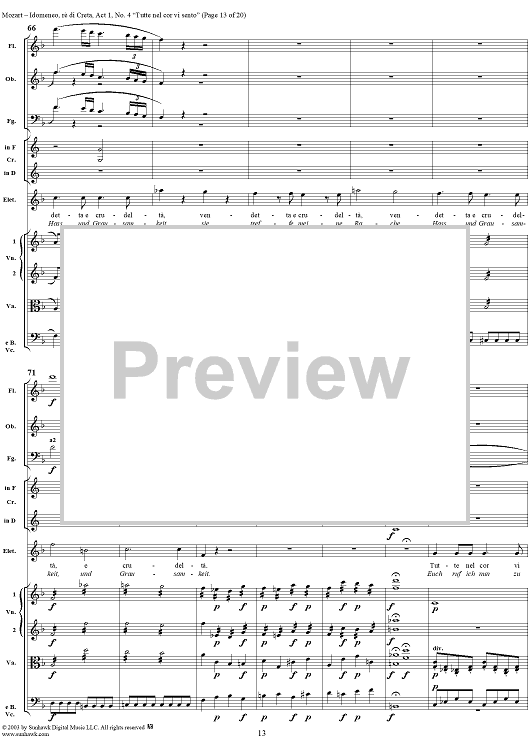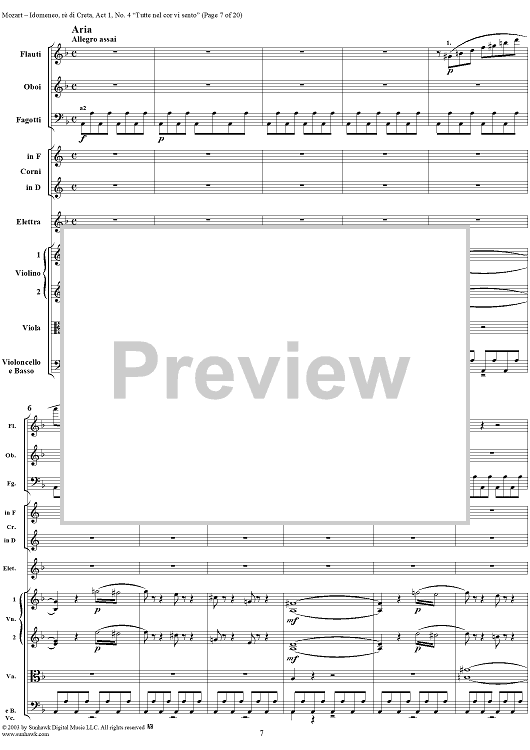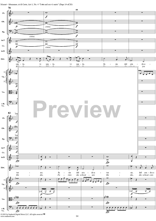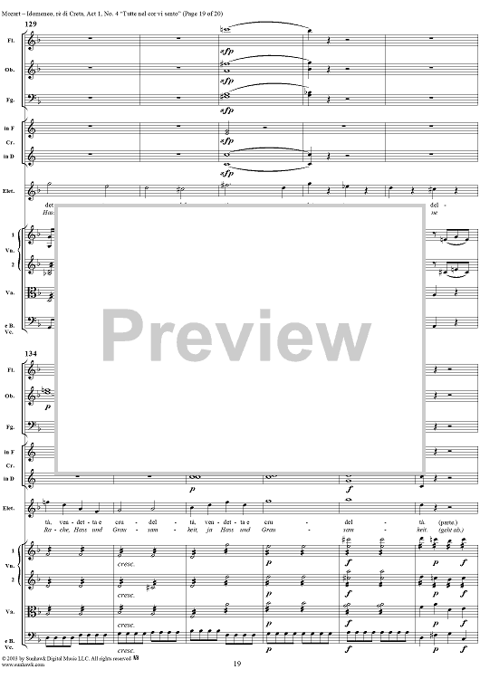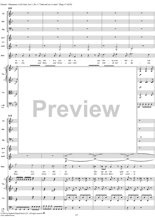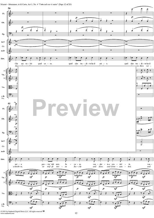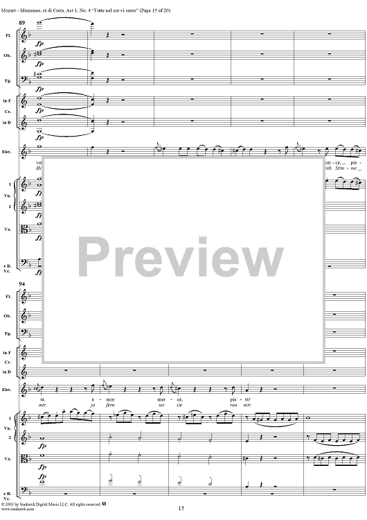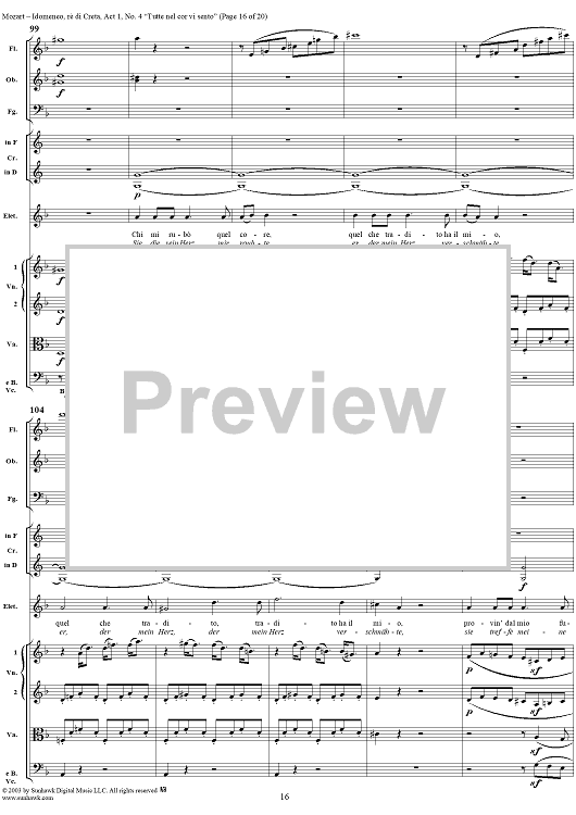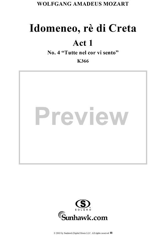 Digital Sheet Music for Idomeneo, rè di Creta, Act 1, No. 4 "Tutte nel cor vi sento" - Full Score by Wolfgang Amadeus Mozart scored for Voice and Orchestra; id:291848