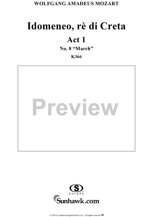 Digital Sheet Music for Idomeneo, rè di Creta, Act 1, No. 8 "March" - Full Score by Wolfgang Amadeus Mozart scored for Orchestra; id:291852