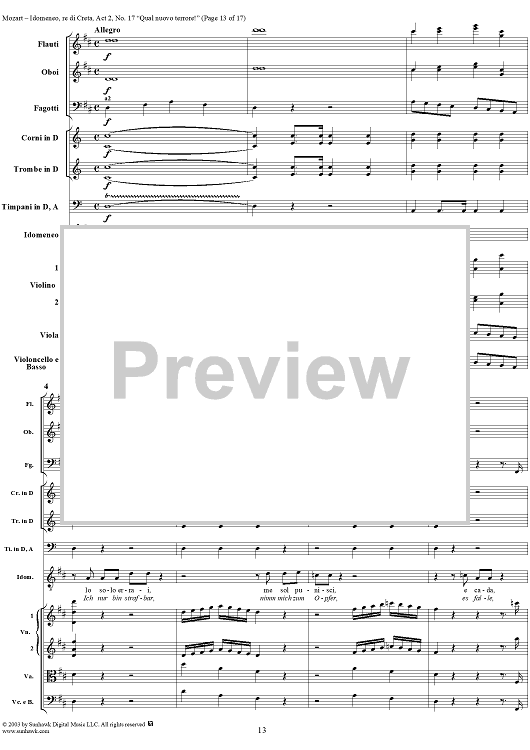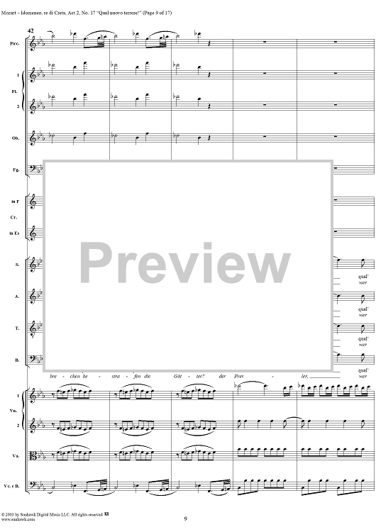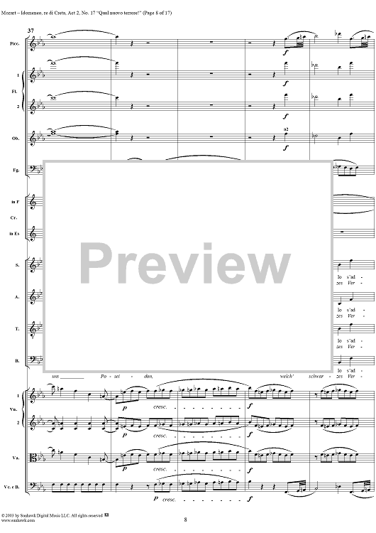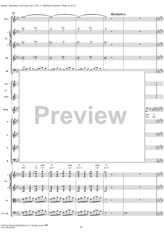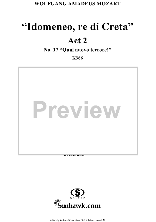 Digital Sheet Music for Idomeneo, rè di Creta, Act 2, No. 17 "Qual nuovo terrore!" - Full Score by Wolfgang Amadeus Mozart scored for Voice and Orchestra; id:291861