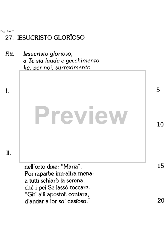 Digital Sheet Music for Iesucristo glorioso - Score by , Unknown Writer, Marco Sofianopulo scored for Voice/Lute or Organ; id:350557