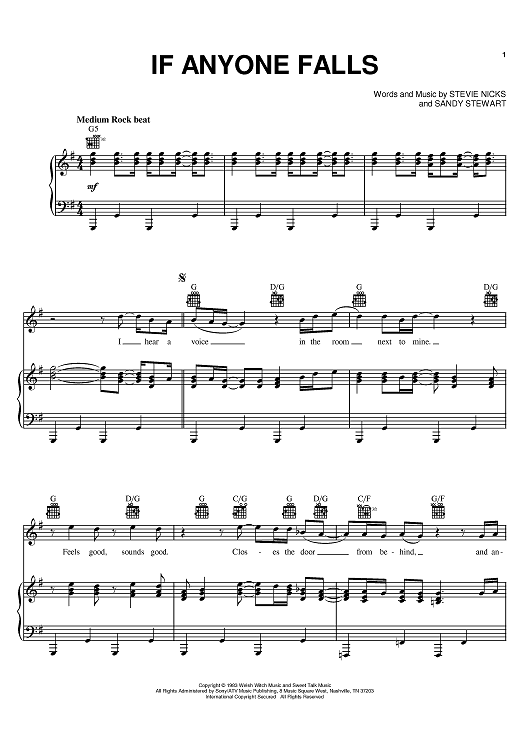 Digital Sheet Music for If Anyone Falls by Stevie Nicks, Sandy Stewart scored for Piano/Vocal/Chords; id:397756
