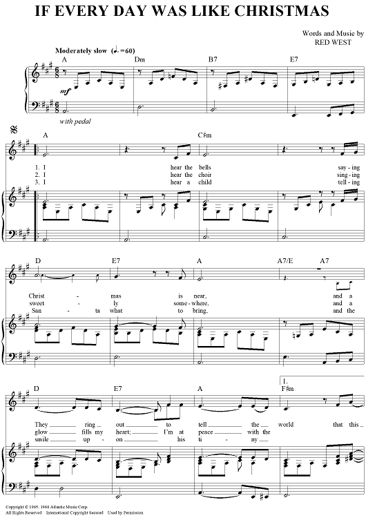 Digital Sheet Music for If Every Day Was Like Christmas by Elvis Presley, Red West scored for Piano/Vocal/Chords; id:454292