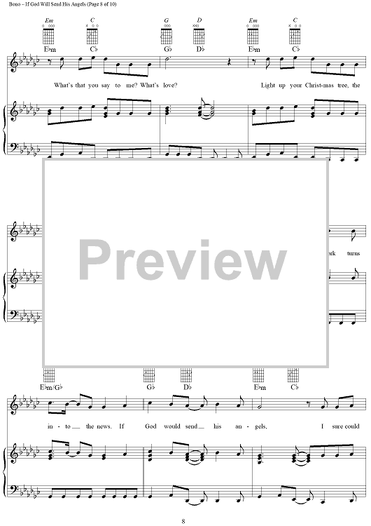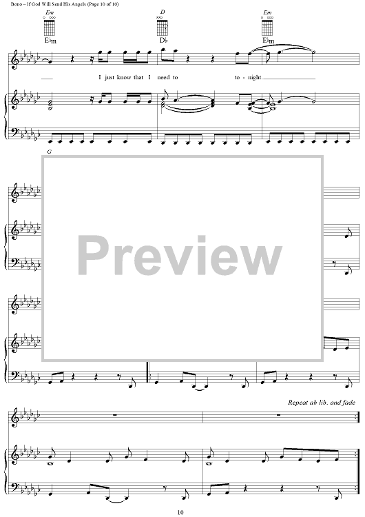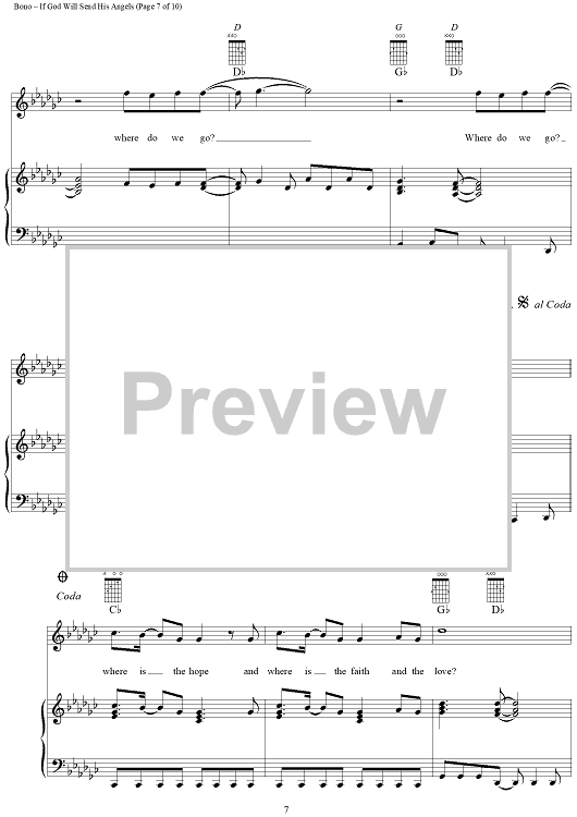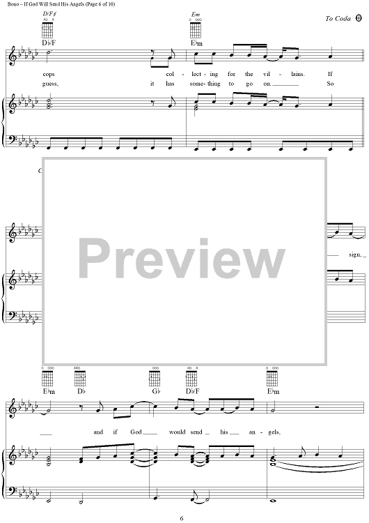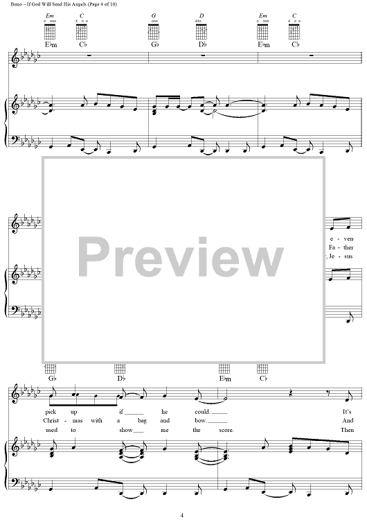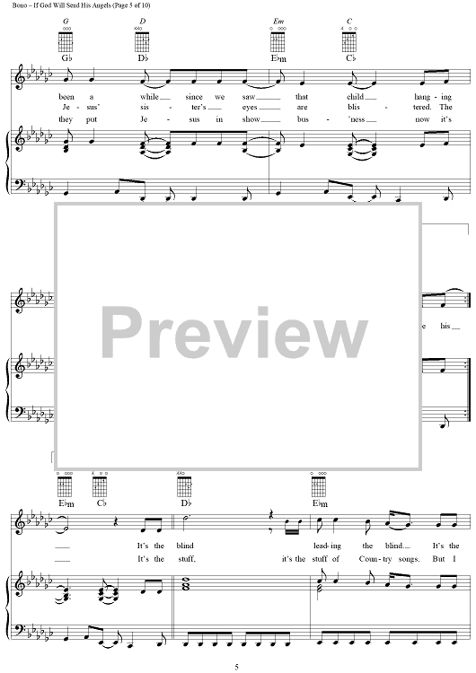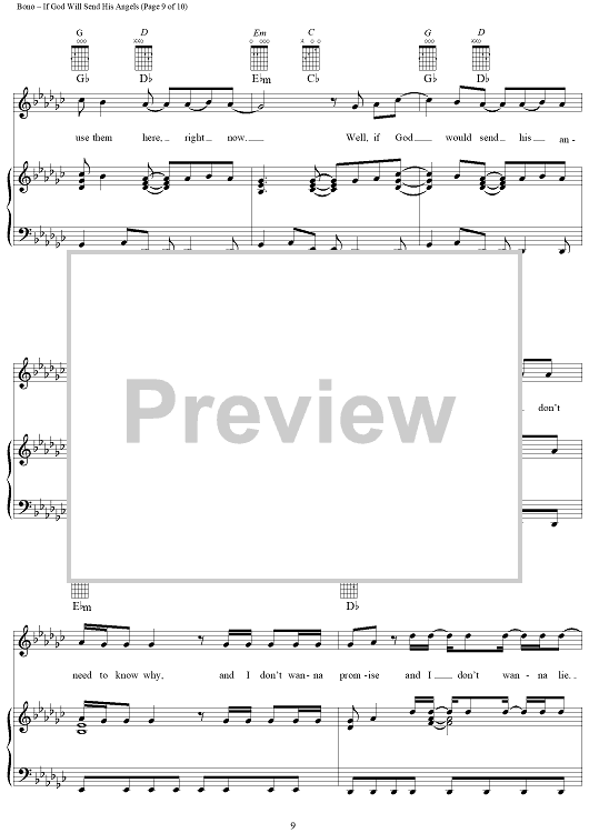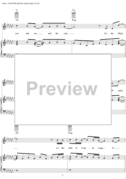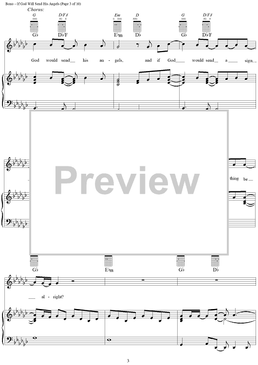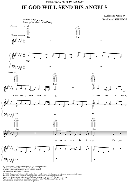 Digital Sheet Music for If God Will Send His Angels by U2, Bono scored for Piano/Vocal/Chords; id:274943