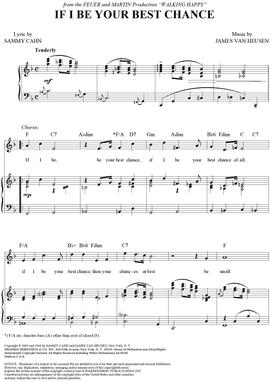 Digital Sheet Music for If I Be Your Best Chance by Sammy Cahn, Jimmy Van Heusen scored for Piano/Vocal/Chords; id:355332