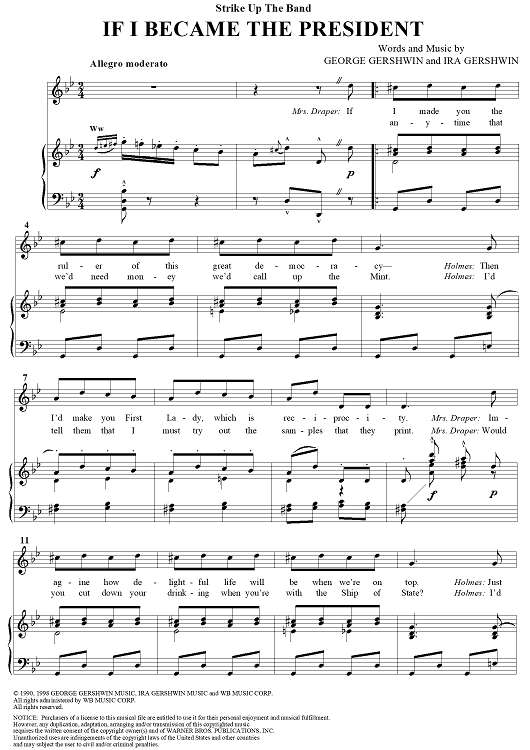 Digital Sheet Music for If I Became the President by George Gershwin, Ira Gershwin scored for Piano/Vocal/Chords; id:215573