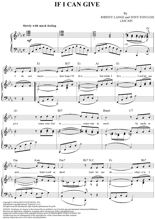 Digital Sheet Music for If I Can Give by Johnny Lange, Tony Fontane scored for Piano/Vocal/Chords; id:151634