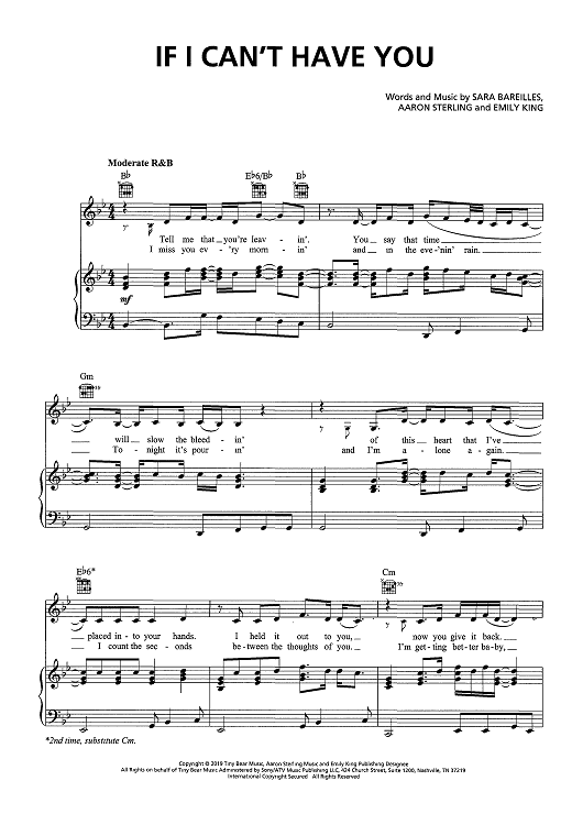 Digital Sheet Music for If I Can't Have You by Sara Bareilles, Aaron Sterling, Emily King scored for Piano/Vocal/Chords; id:467887