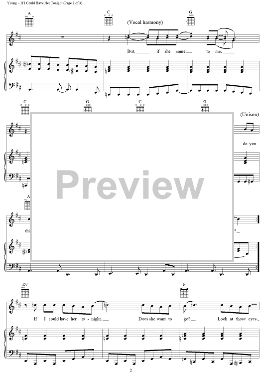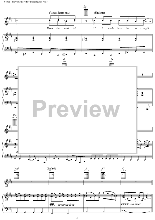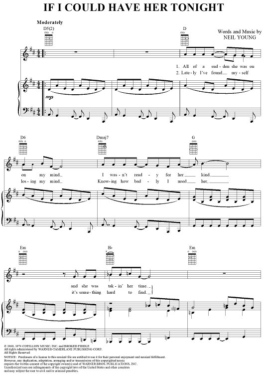 Digital Sheet Music for If I Could Have Her Tonight by Neil Young scored for Piano/Vocal/Chords; id:263070