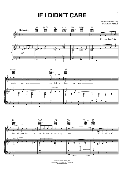 Digital Sheet Music for If I Didn't Care by Jack Lawrence, The Ink Spots scored for Piano/Vocal/Chords; id:381072