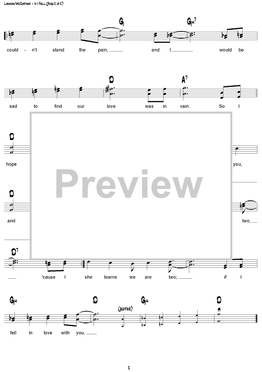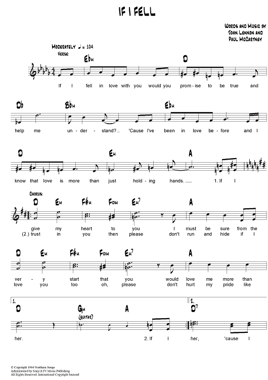 Digital Sheet Music for If I Fell by Paul McCartney, The Beatles, John Lennon scored for Lead Sheet; id:361919