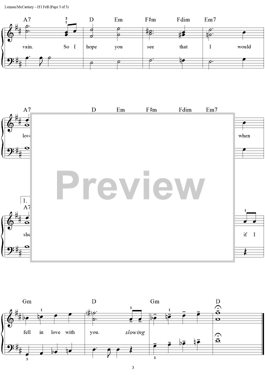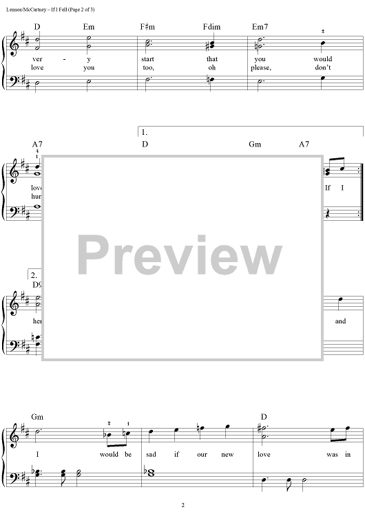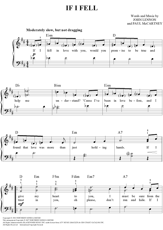 Digital Sheet Music for If I Fell by Paul McCartney, The Beatles, John Lennon scored for Easy Piano/Vocal/Chords; id:448654