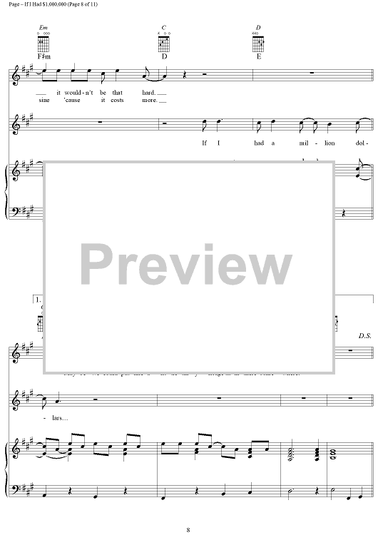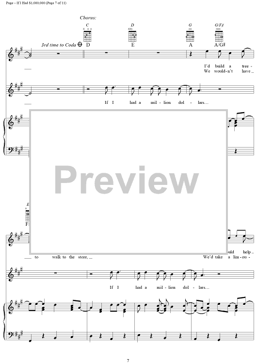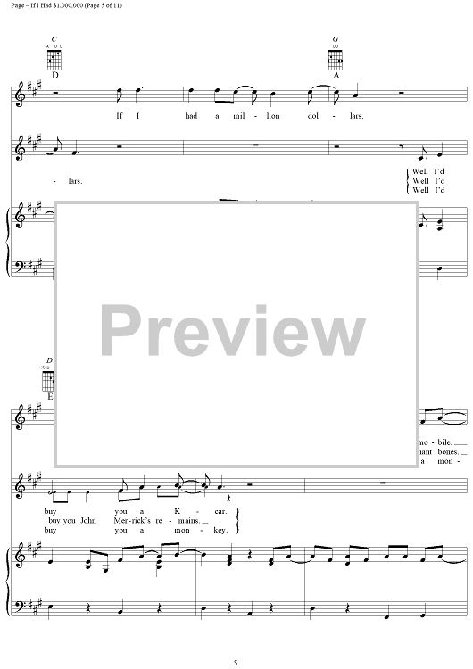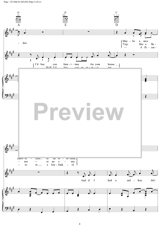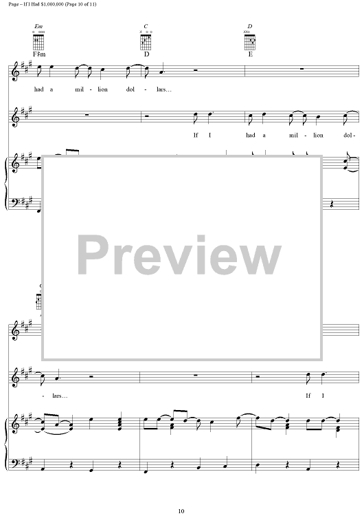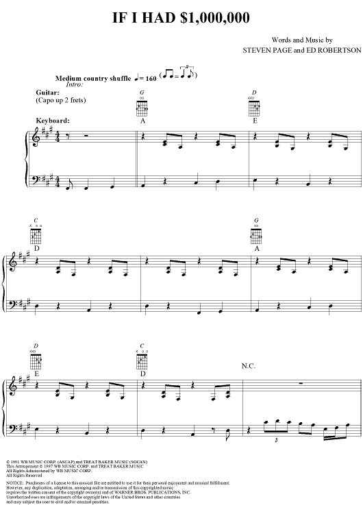 Digital Sheet Music for If I Had $1,000,000 by Steven Page, Ed Robertson, Barenaked Ladies scored for Piano/Vocal/Chords; id:253991