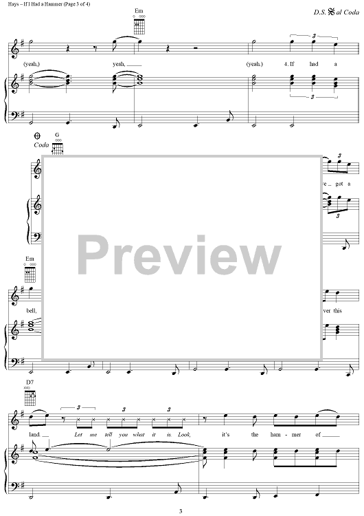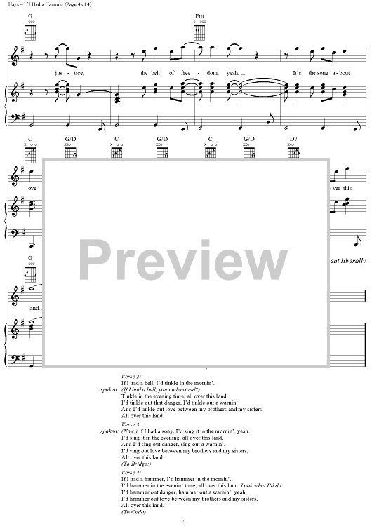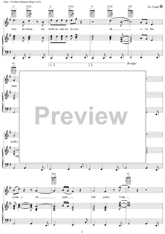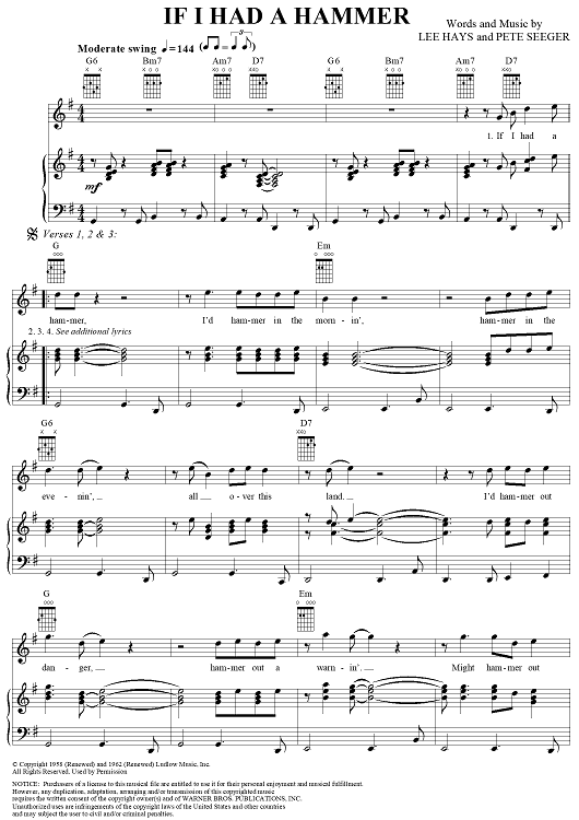 Digital Sheet Music for If I Had a Hammer by Lee Hays, Sam Cooke, Peter Seeger scored for Piano/Vocal/Chords; id:304390