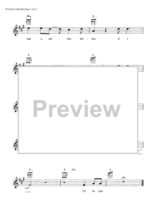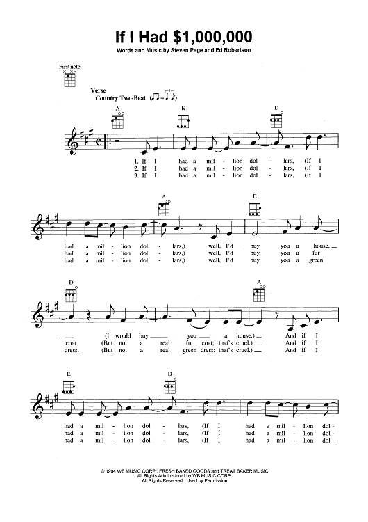 Digital Sheet Music for If I Had A Million Dollars by Steven Page, Ed Robertson scored for Ukulele/Vocal; id:465468