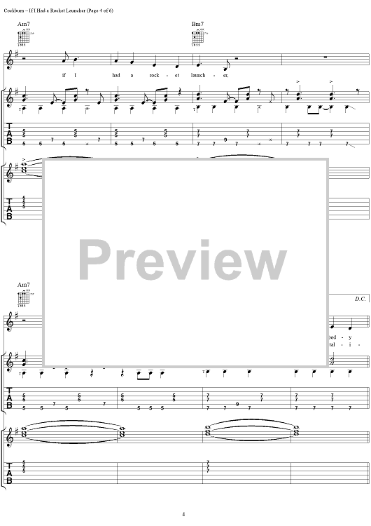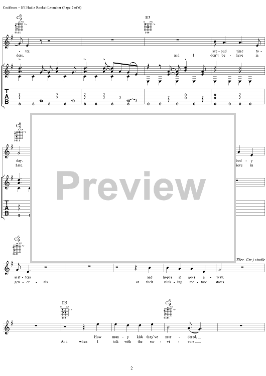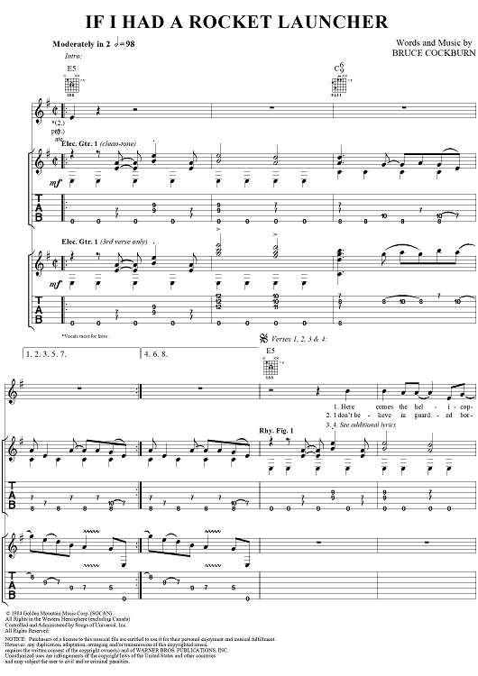 Digital Sheet Music for If I Had a Rocket Launcher by Bruce Cockburn scored for Guitar Tab/Vocal; id:292086