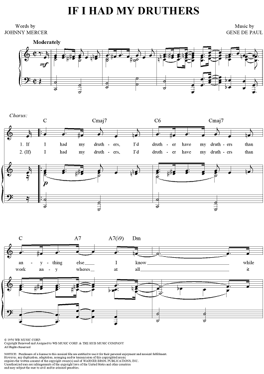 Digital Sheet Music for If I Had My Druthers by Johnny Mercer, Gene De Paul scored for Piano/Vocal/Chords; id:271486