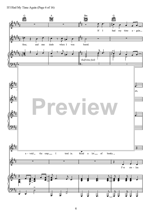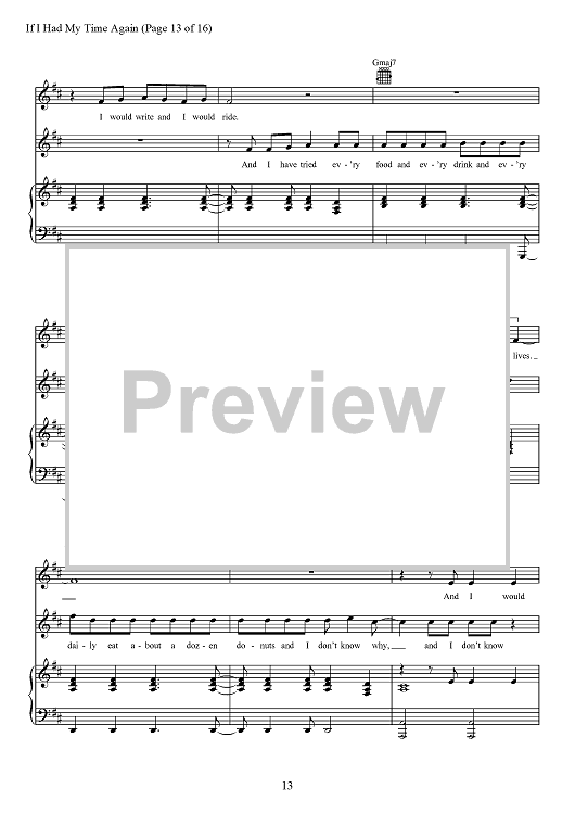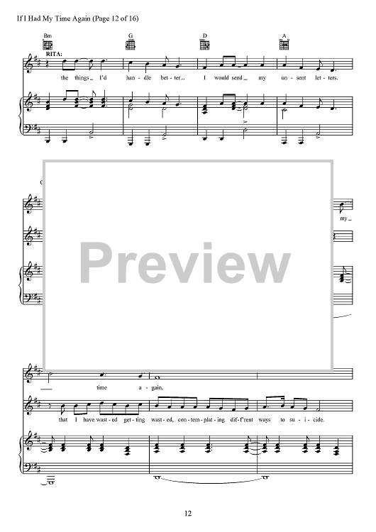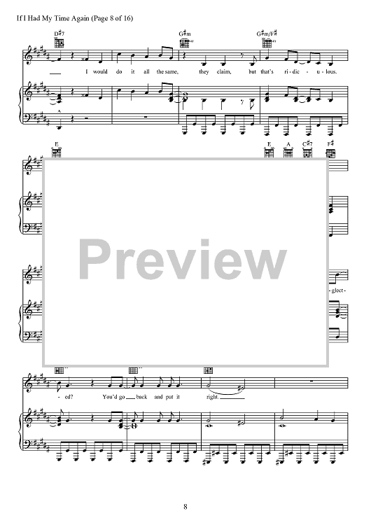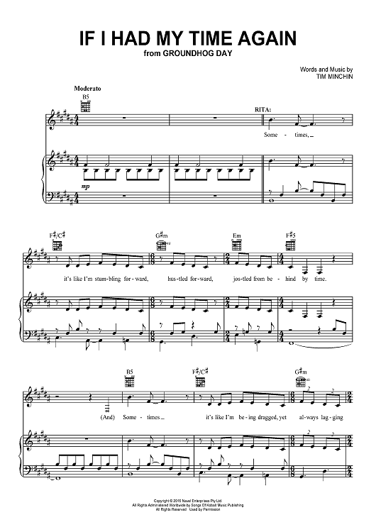 Digital Sheet Music for If I Had My Time Again - from Groundhog Day by Tim Minchin scored for Piano/Vocal/Chords; id:467846