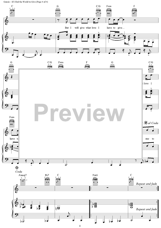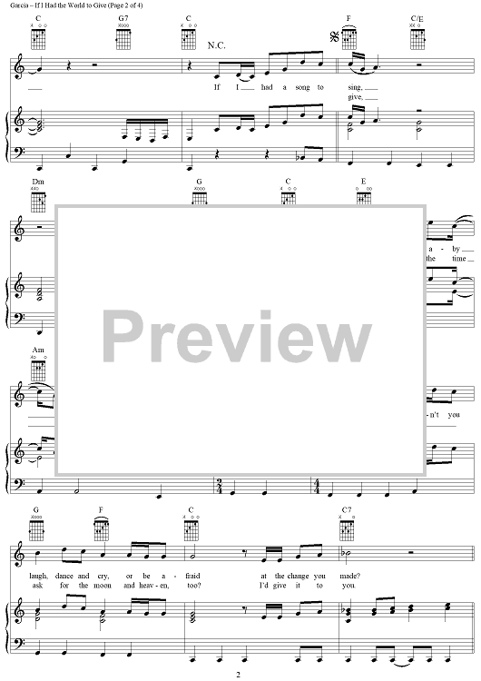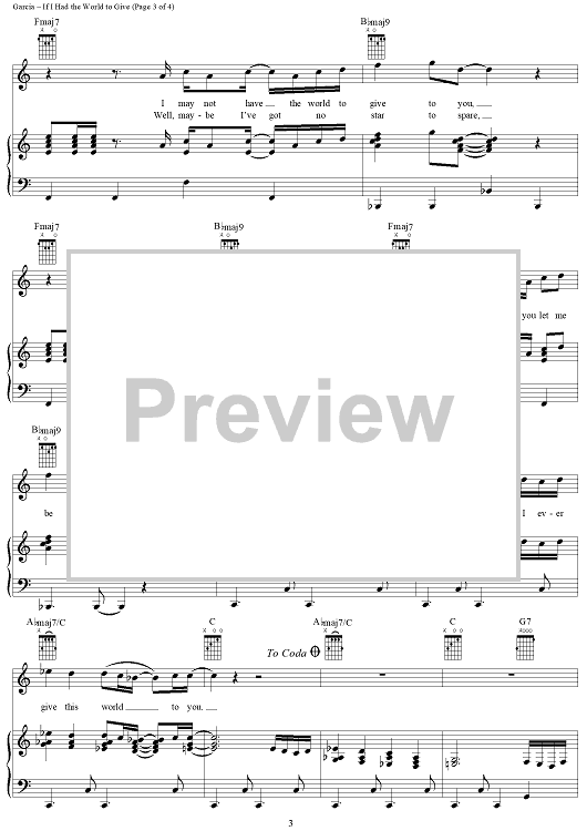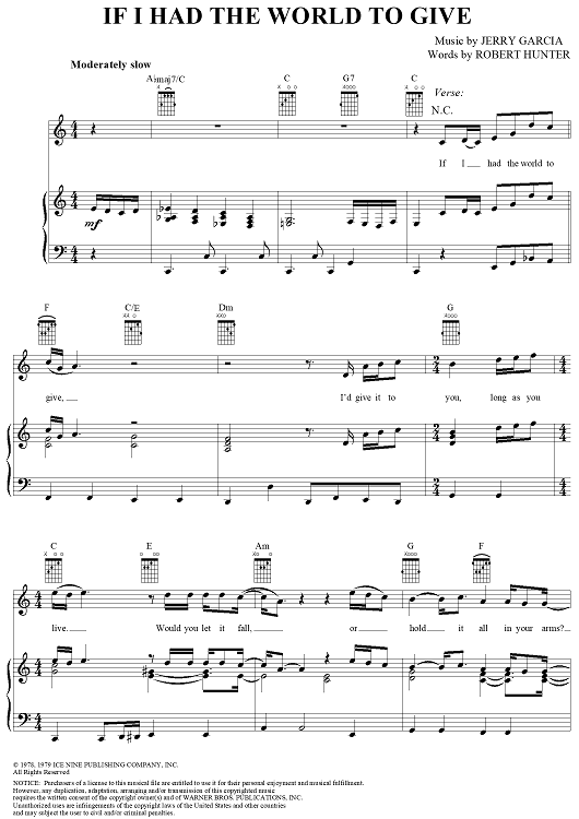 Digital Sheet Music for If I Had The World To Give by Jerry Garcia, Robert Hunter, Grateful Dead scored for Piano/Vocal/Chords; id:241793