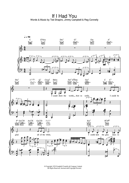 Digital Sheet Music for If I Had You by Diana Krall, Reg Connelly, Ted Shapiro, Jimmy Campbell scored for Piano/Vocal/Chords; id:378830