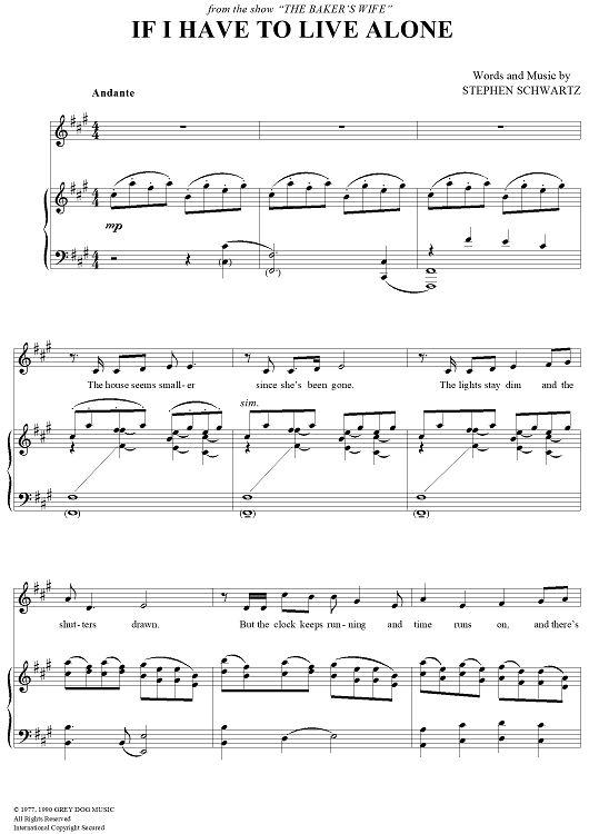 Digital Sheet Music for If I Have to Live Alone by Stephen Schwartz scored for Piano/Vocal; id:113980