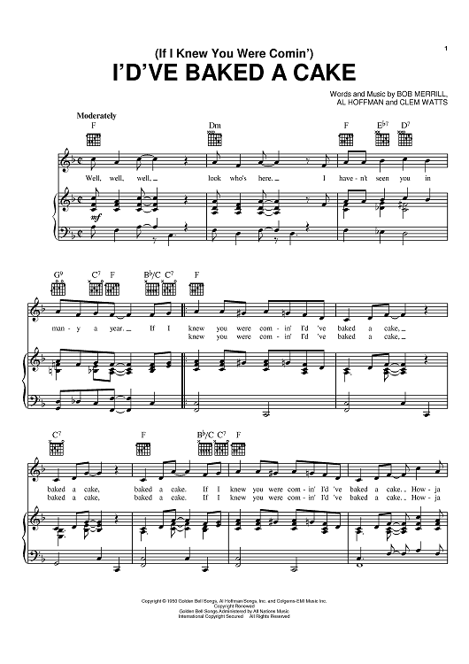 Digital Sheet Music for (If I Knew You Were Comin') I'd've Baked A Cake by Al Hoffman, Bob Merrill, Georgia Gibbs, Clem Watts scored for Piano/Vocal/Chords; id:368405
