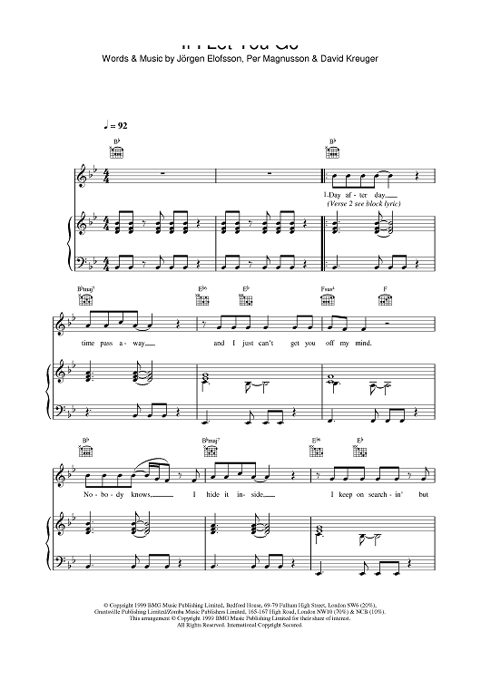 Digital Sheet Music for If I Let You Go by Westlife scored for Piano/Vocal/Chords; id:376908