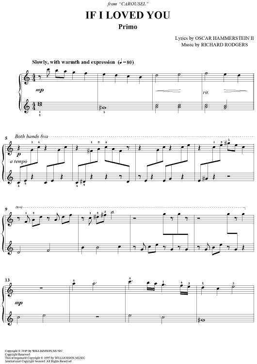 Digital Sheet Music for If I Loved You by Richard Rodgers, Oscar Hammerstein II, Joan Frey Boytim scored for 1 Piano, 4 Hands; id:394740