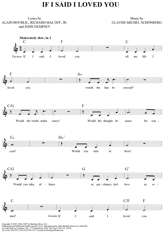 "If I Said I Loved You" Sheet Music by Claude-Michel Schonberg