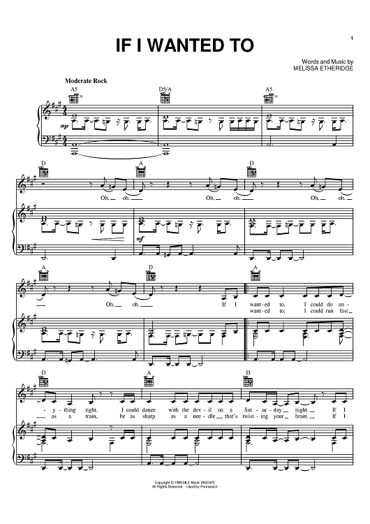 "If I Wanted To" Sheet Music by Melissa Etheridge