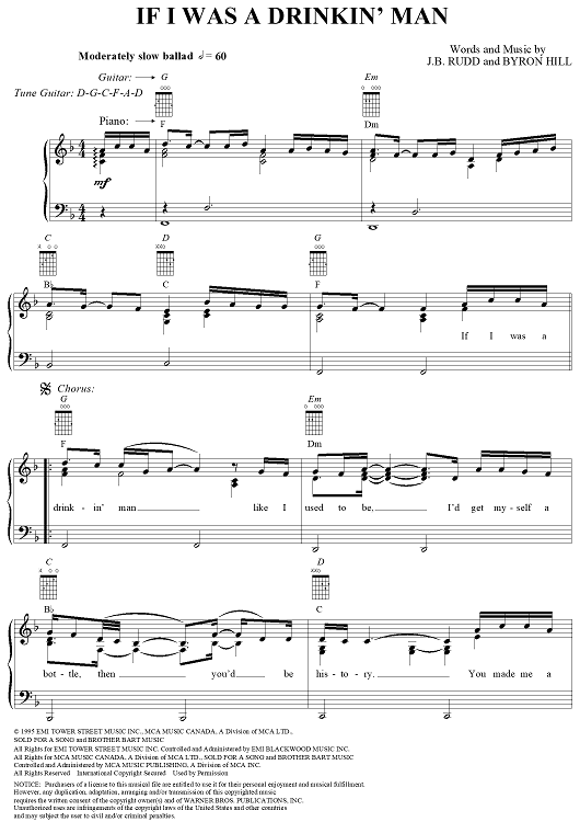 Digital Sheet Music for If I Was a Drinkin' Man by Byron Hill, Neal McCoy, J. B. Rudd scored for Piano/Vocal/Chords; id:113462